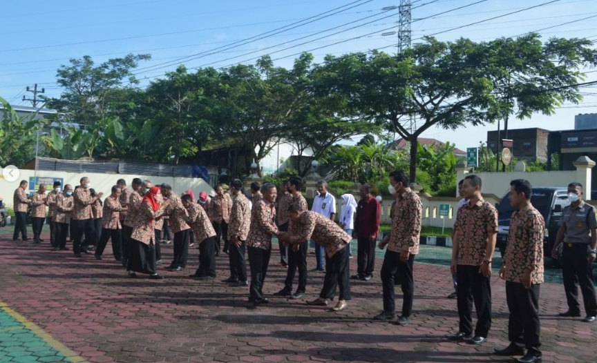 Seusai apel digelar halalbihalal secara singkat di mana seluruh pegawai saling bersalaman menghaturkan maaf.