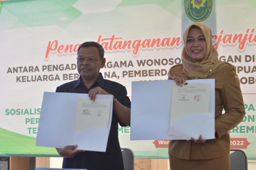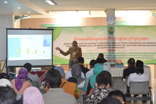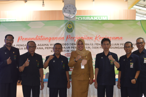Pengadilan Agama Wonosobo Kelas IA mengadakan Penandatanganan Perjanjian Kerja Sama dengan Dinas Pengendalian Penduduk, Keluarga Berencana, Pemberdayaan Perempuan, dan Perlindungan Anak (PPKBPPPA) Kabupaten Wonosobo yang dihadiri oleh kepala dinas, Dyah Retno Sulistyowati, S.STP. pada Senin (14/11) di Ruang Tunggu PTSP Pengadilan Agama Wonosobo.